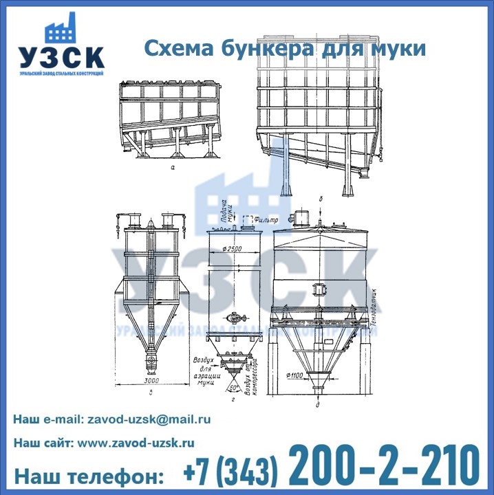 Завод «УЗСК» в Владикавказе проектирует, производит и поставляет целевое оборудование, в том числе, бункеры для хранения муки и прочих сыпучих материалов.