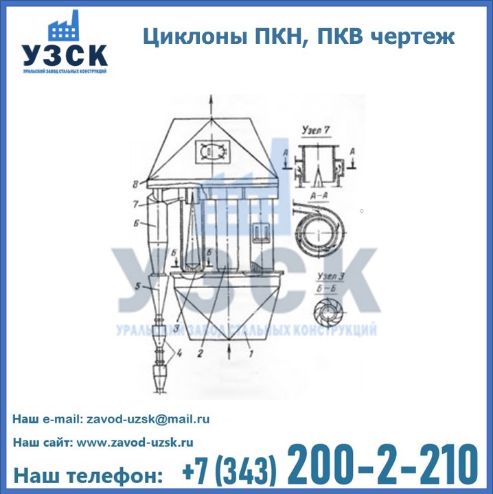 ПК — пылеконцентратор, «Н» в маркировке циклонов модели ПКН означает нижний подвод газа, соответственно, «В» в ПКВ- верхний подвод.