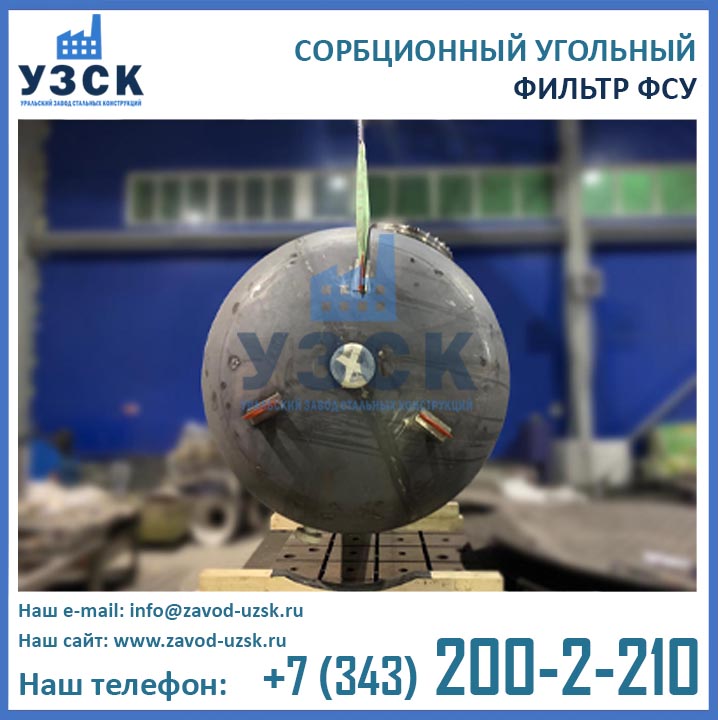 Качественную работу отопительных и промышленных котельных, линий по очистке конденсата и природных вод, электростанций обеспечивает фильтр сорбционный угольный типа ФСУ — вертикальный сосуд с одной камерой цилиндрической формы. Основное назначение оборудования состоит в глубокой очистке возвращаемого с производства конденсата от запахов, органических загрязнений и привкусов. Использование ФСУ в системах водоподготовки гарантирует очищение субстанции от масел, органических примесей, остатков нефтепродуктов до нормального значения — 0.52-1.0 мг/л. Купить в Владикавказе угольные фильтры предлагает наш Уральский завод стальных конструкций. Мы выполняем производство ФСУ под нужды предприятия, возможно изготовление сорбционных фильтров ФСУ из нержавеющей стали включая корпус и внутренние устройства.