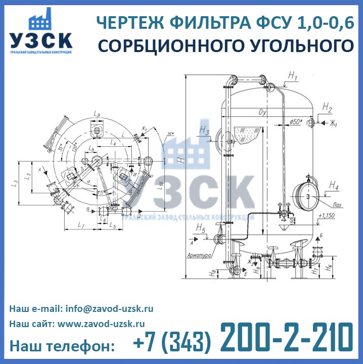 Наш завод (Уральский завод стальных конструкций) является производителем угольных фильтров, сам осуществляет изготовление и реализацию выпускаемой продукции. Приобретая фильтры ФСУ-1.0-0.6 в Владикавказе от производителя, Вы приобретаете оборудование без наценок всевозможных посредников, а также значительно экономите свое время. Фильтры ФСУ1.0-0.6 завода УЗСК – это гарантия качества, кратчайшие сроки изготовления и цена, которая Вам понравится.