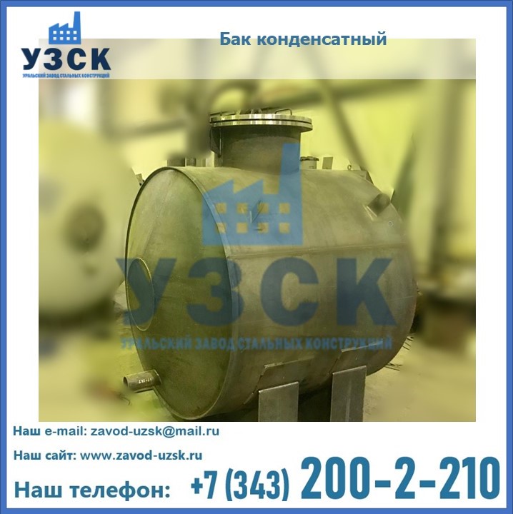 Многие заказчики стараются конденсатные баки купить по выгодной цене в компании «УЗСК» в Владикавказе. Причин несколько. Производитель поставляет емкости с полным комплектом лестниц, площадок обслуживания. Бак после гидравлических испытаний покрывают специальной внутренней и наружной краской, накладывают теплоизоляцию или наваривают крепеж для навески минматов. Условия теплоизоляции согласуются с заказчиком.