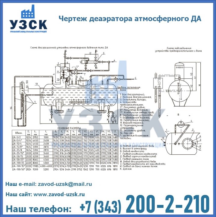 Приобрести качественное оборудование, в том числе, деаэраторы ДА, можно в компании УЗСК в Владикавказе. Мы предлагаем долговечную и надежную продукцию по приемлемой цене. Заказать и купить деаэраторы или другие изделия высокого качества можно через сайт Уральского Завода Стальных Конструкций, или позвонив по указанному в разделе «Контакты» телефону.